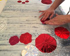 First we start with some acrylic underpainting, to set the tone and shape of the painting. Then we design our 'garden' with metallic foils